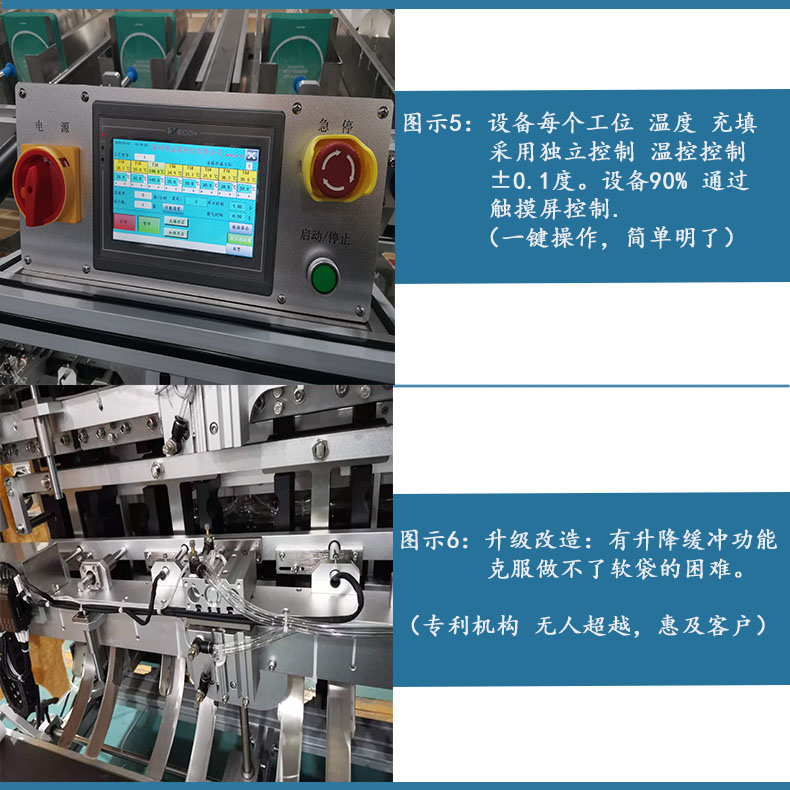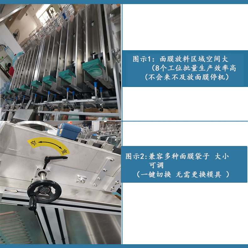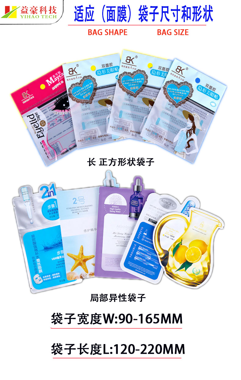2.全自動面膜機(jī): | 充填精華液,再對充填完精華液的面膜袋進(jìn)行封口和打碼。 |