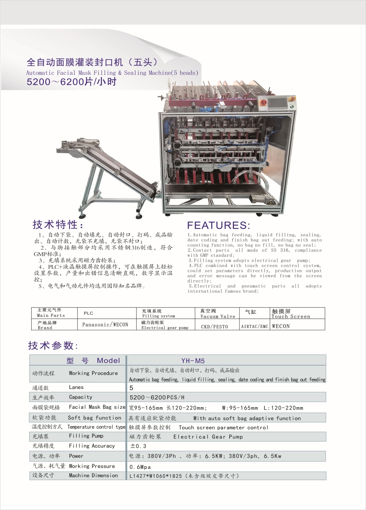 自動(dòng)5頭面膜生產(chǎn)線設(shè)備方案:
