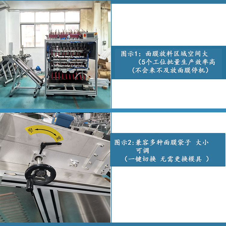 本面膜生產(chǎn)線可以很好的兼容面膜軟袋,可以把面膜袋中沒有裝面膜布和充填重量超標(biāo)的面膜產(chǎn)品剔除,最后可以把面膜按設(shè)定的片數(shù)整齊成堆送出,便于后端打包裝盒,本生產(chǎn)線只需要1個(gè)人操作,就可以保質(zhì)保量地生產(chǎn)面膜. | |