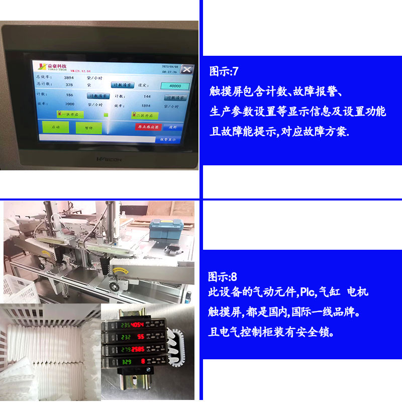 4.PLC+液晶觸摸屏控制操作,可在觸摸屏上輕松設(shè)置設(shè)備參數(shù),產(chǎn)量和出錯信息清晰直觀;